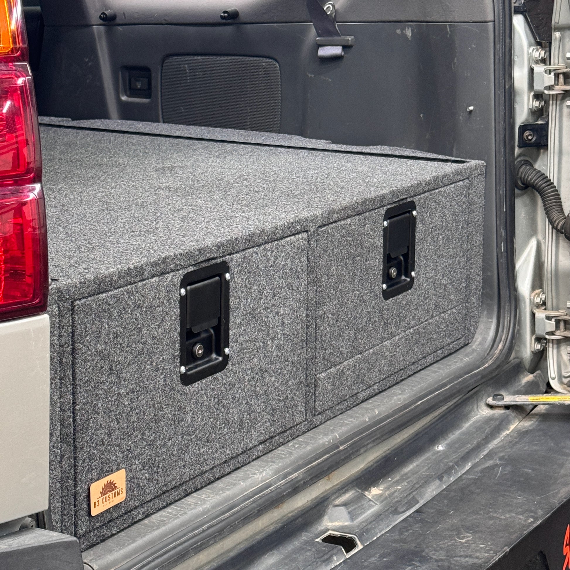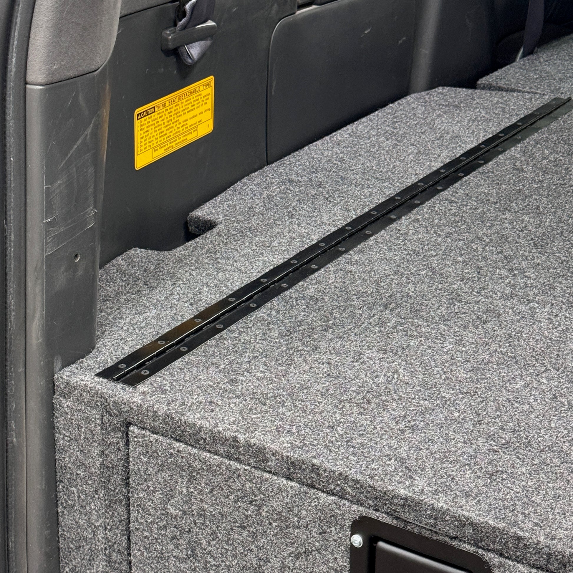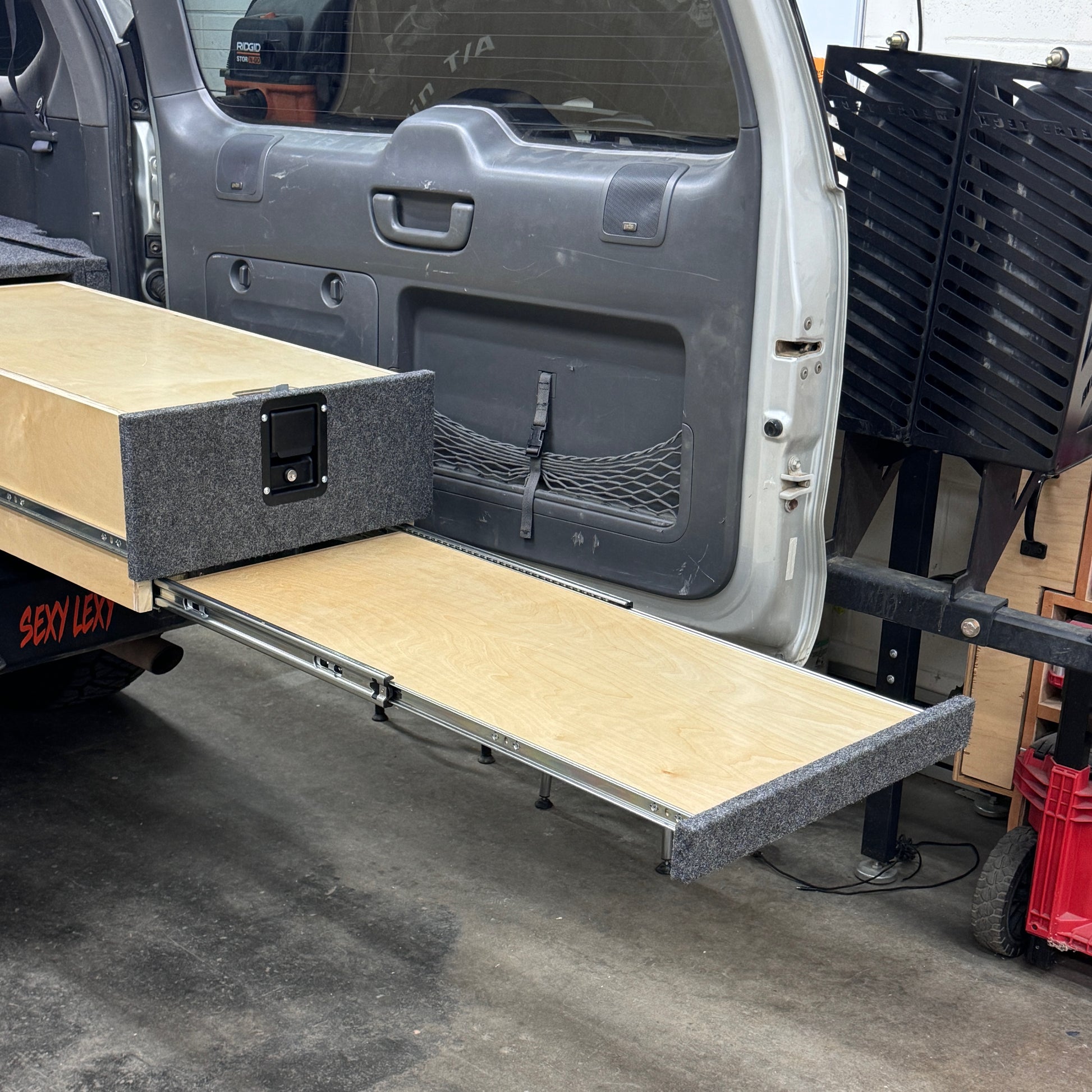These quickly detachable sleeper platforms cover the rear seats and match the height of your drawer systems to create perfectly flat space for the ideal overlanding experience. Through fold down legs, these platforms aren’t only secure but also stow away nicely. These platforms also have room underneath to provide additional space for storing items while you use the space above.
