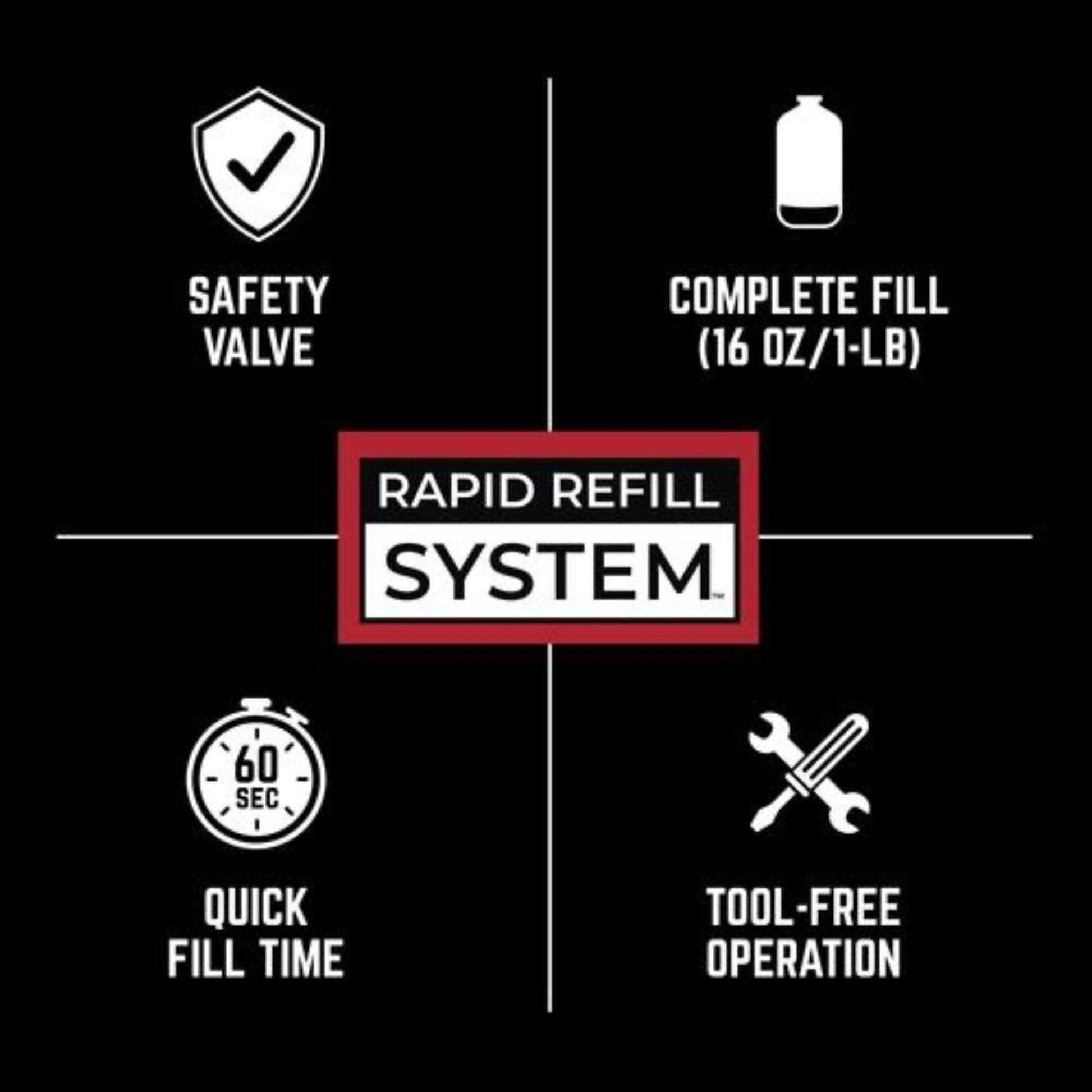 Having a refillable tank eliminates the need to dispose the single use canisters and allows you to have safe and consistent refills when paired with the refill kit