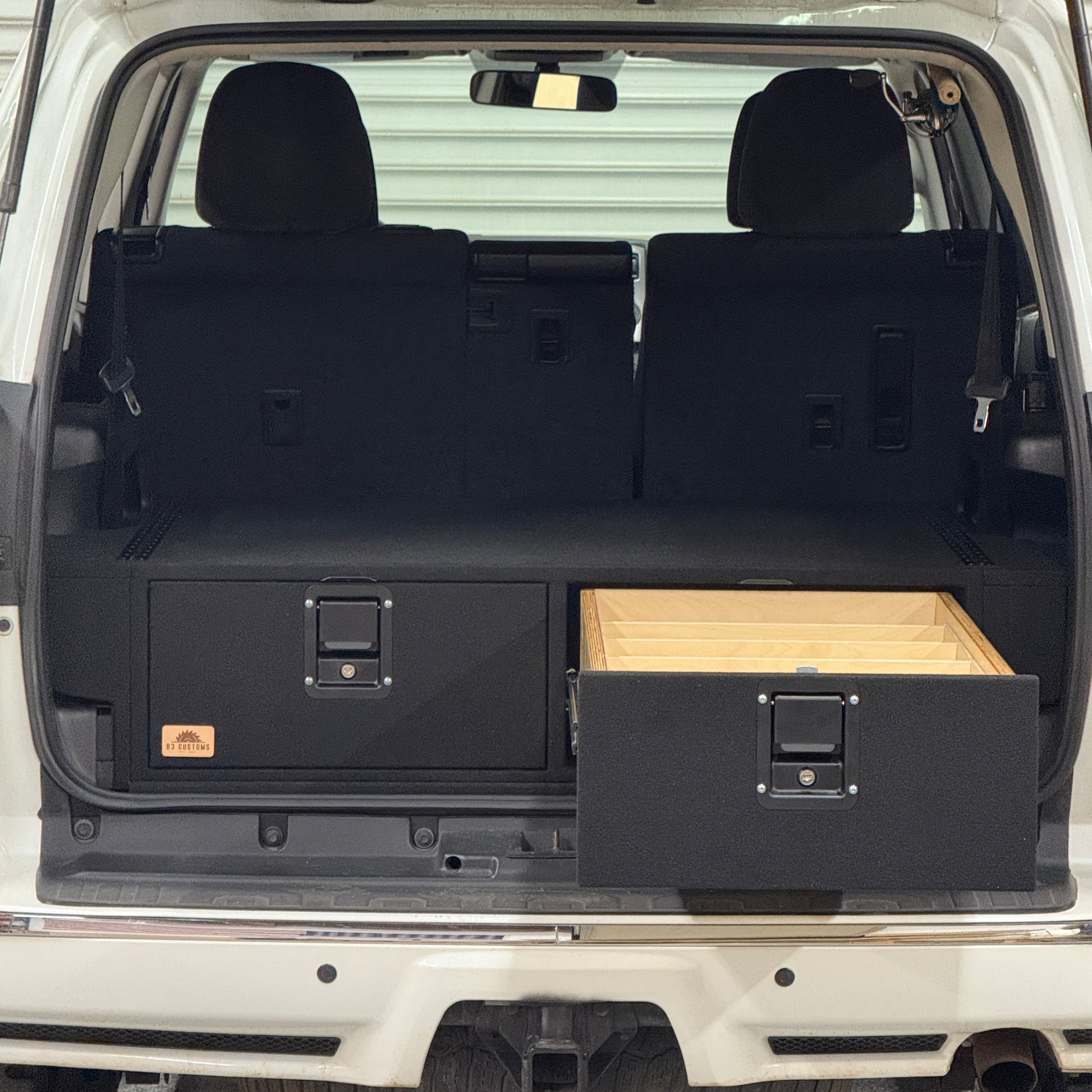 Can't beat the function and value with my B3 Customs 4Runner drawer system. It uses the space very efficiently and presents a clean, rugged build. I can pack and organize all my camp gear out of sight and leave most of the bed space open. Simple and quick to remove the sleep extension for rear seat accessibility.