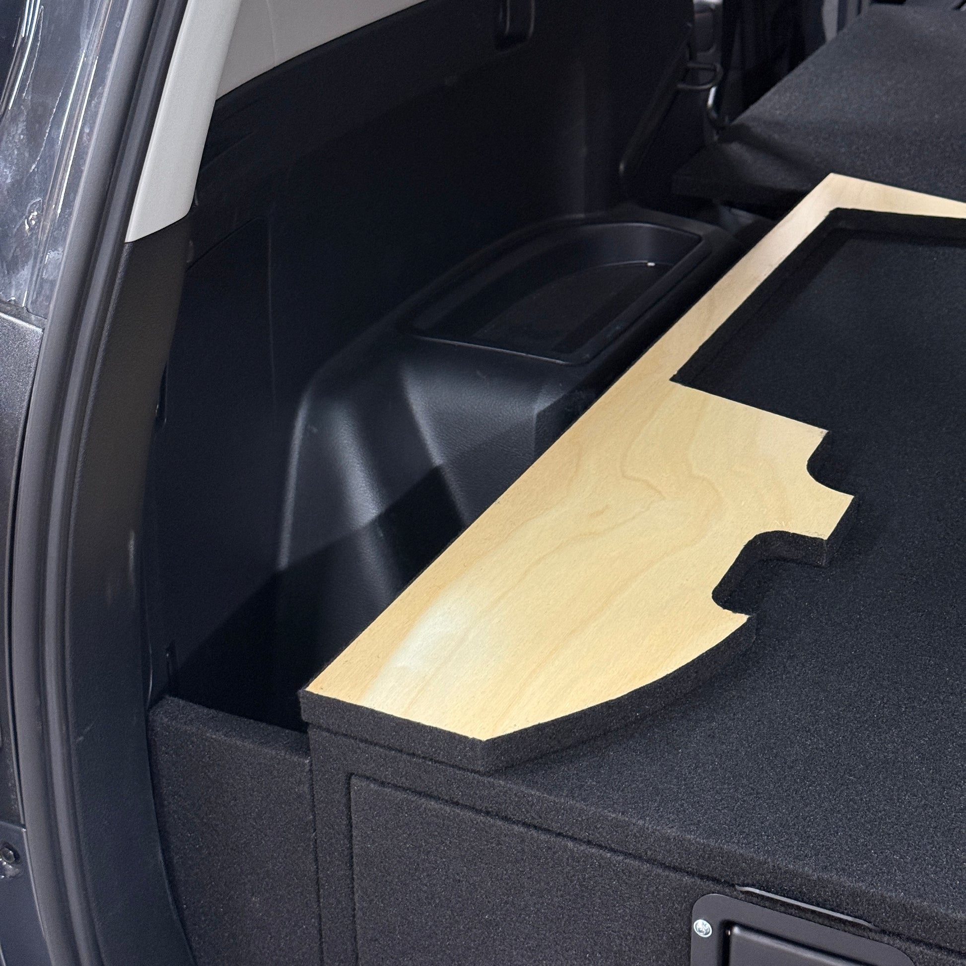 These quickly detachable sleeper platforms cover the rear seats and match the height of your drawer systems to create perfectly flat space for the ideal overlanding experience. Through fold down legs, these platforms aren’t only secure but also stow away nicely. These platforms also have room underneath to provide additional space for storing items while you use the space above.