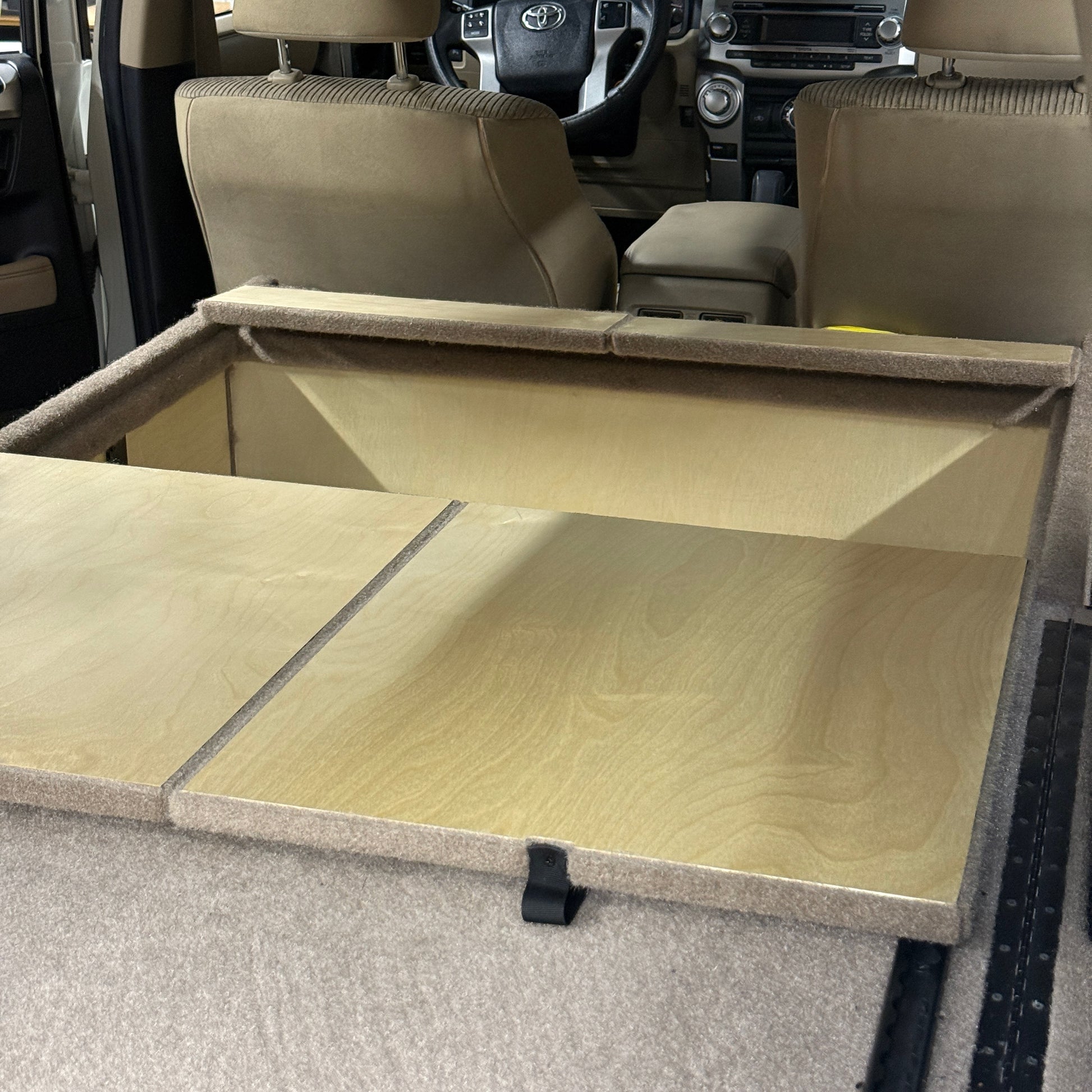 Our vehicle specific, built-to-order seat delete platforms will optimize every inch of your deleted 2nd Row Seats with a simple 10 minute install!