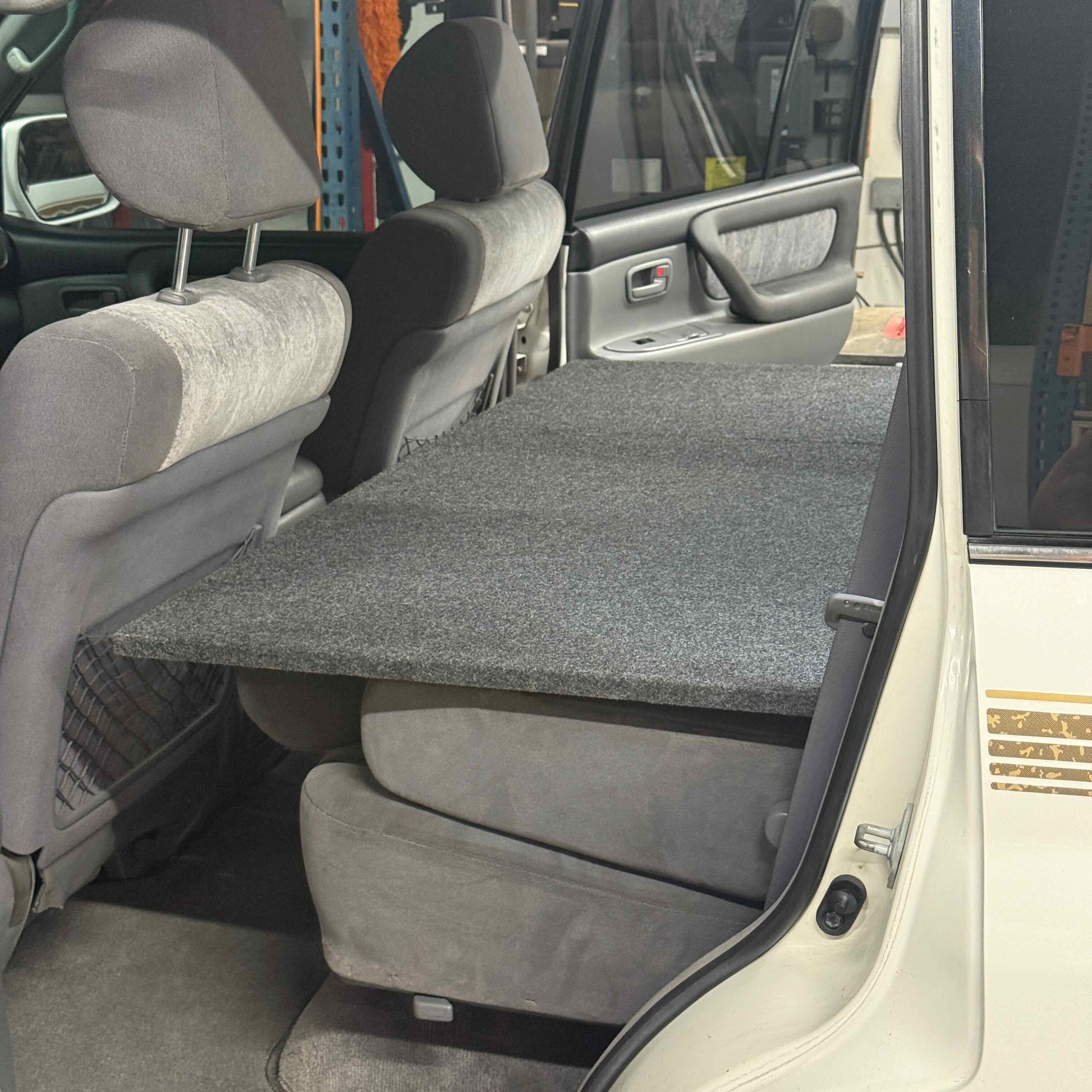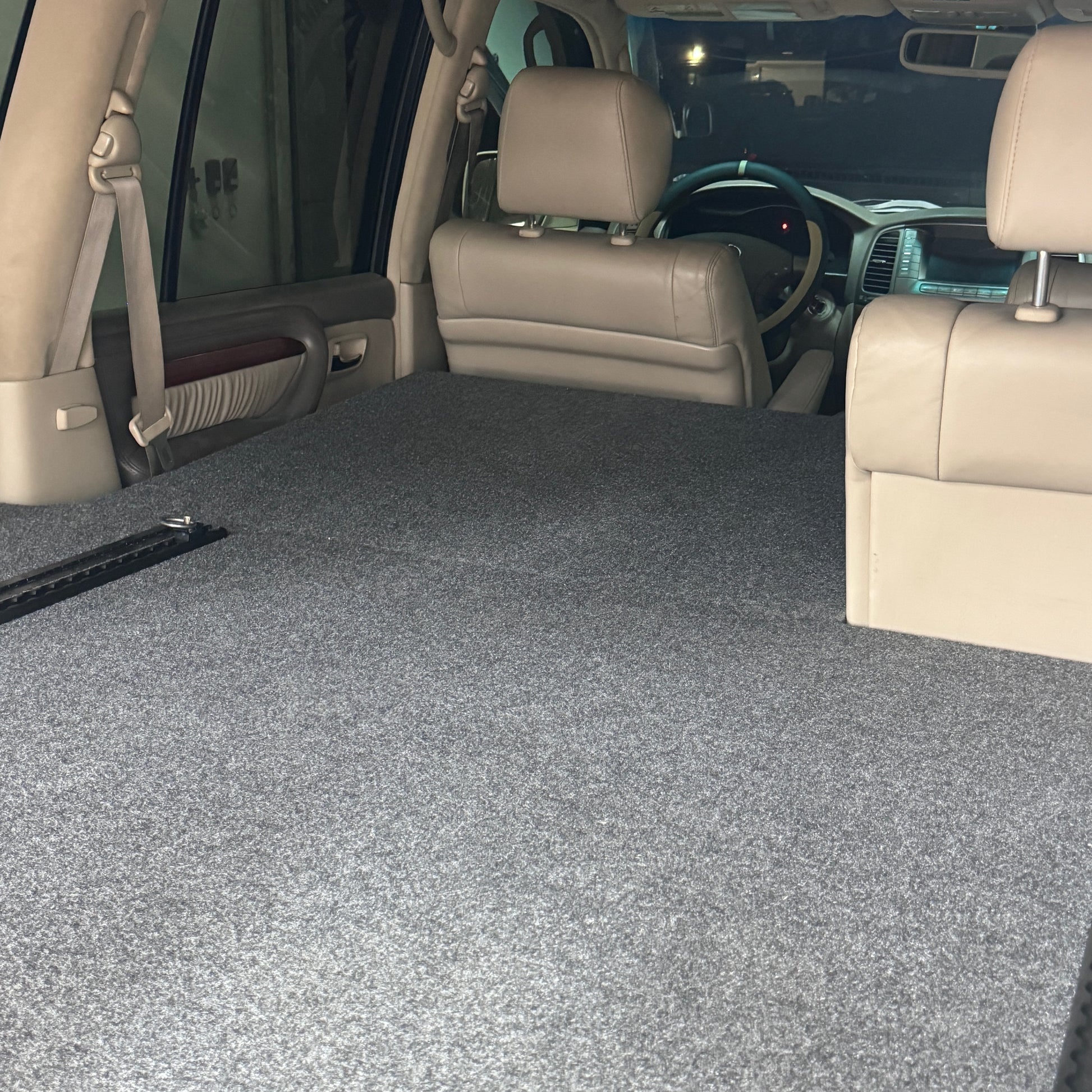These quickly detachable sleeper platforms cover the rear seats and match the height of your drawer systems to create perfectly flat space for the ideal overlanding experience. Through fold down legs, these platforms aren’t only secure but also stow away nicely. These platforms also have room underneath to provide additional space for storing items while you use the space above.